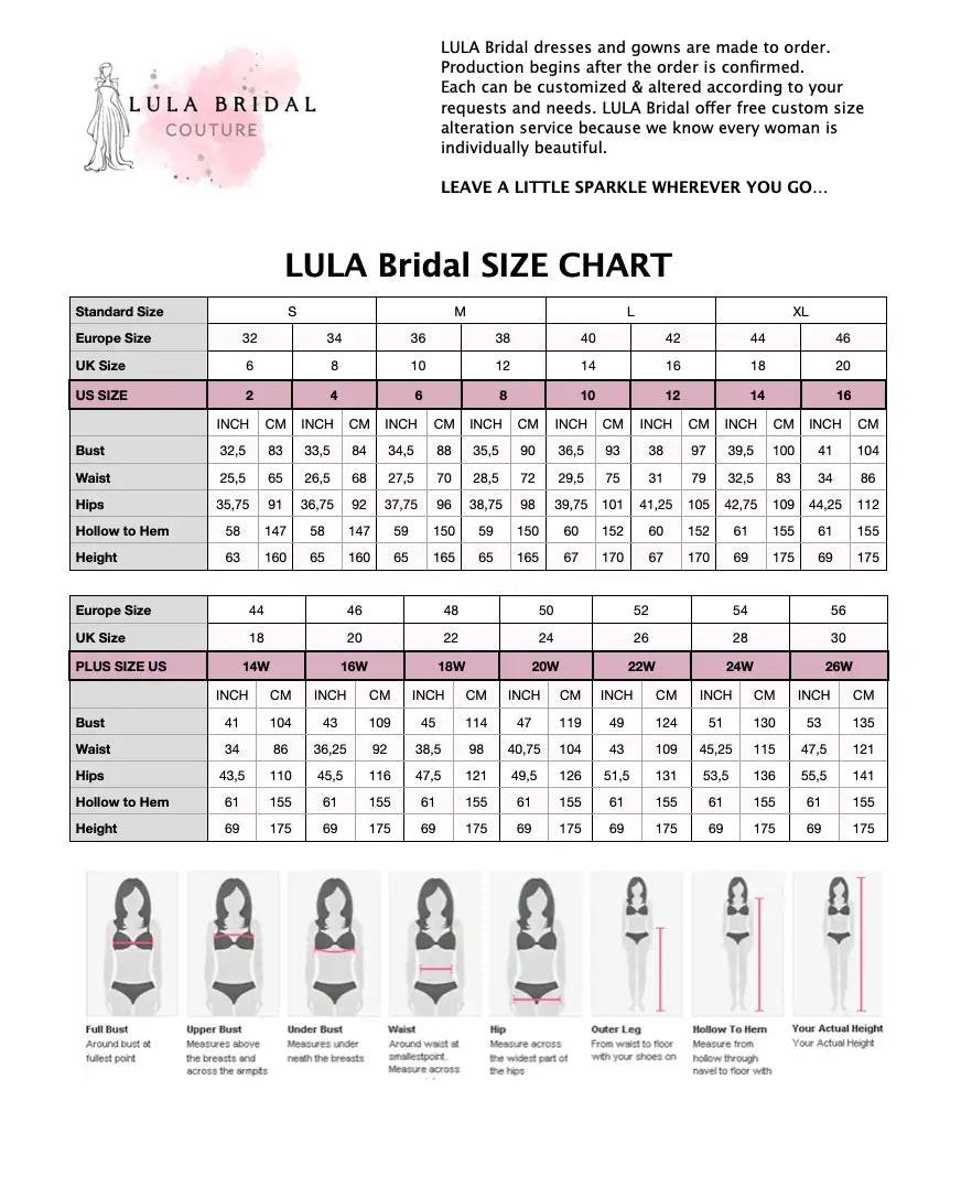 Alle unsere Kleider werden individuell für jeden Kunden individuell angefertigt. Auch die Standardgrößen werden auf Bestellung gefertigt, daher empfehlen wir dringend, in Sondergrößen zu bestellen. Für maßgeschneiderte Kleidergrößen geben Sie uns bitte die Maße in cm oder Zoll an. Die für Overalls benötigten individuellen Parameter finden Sie in der Beschreibung, da sie für jedes Modell unterschiedlich sind. Bitte beachten Sie die Maßanweisungen und messen Sie sich sorgfältig.
