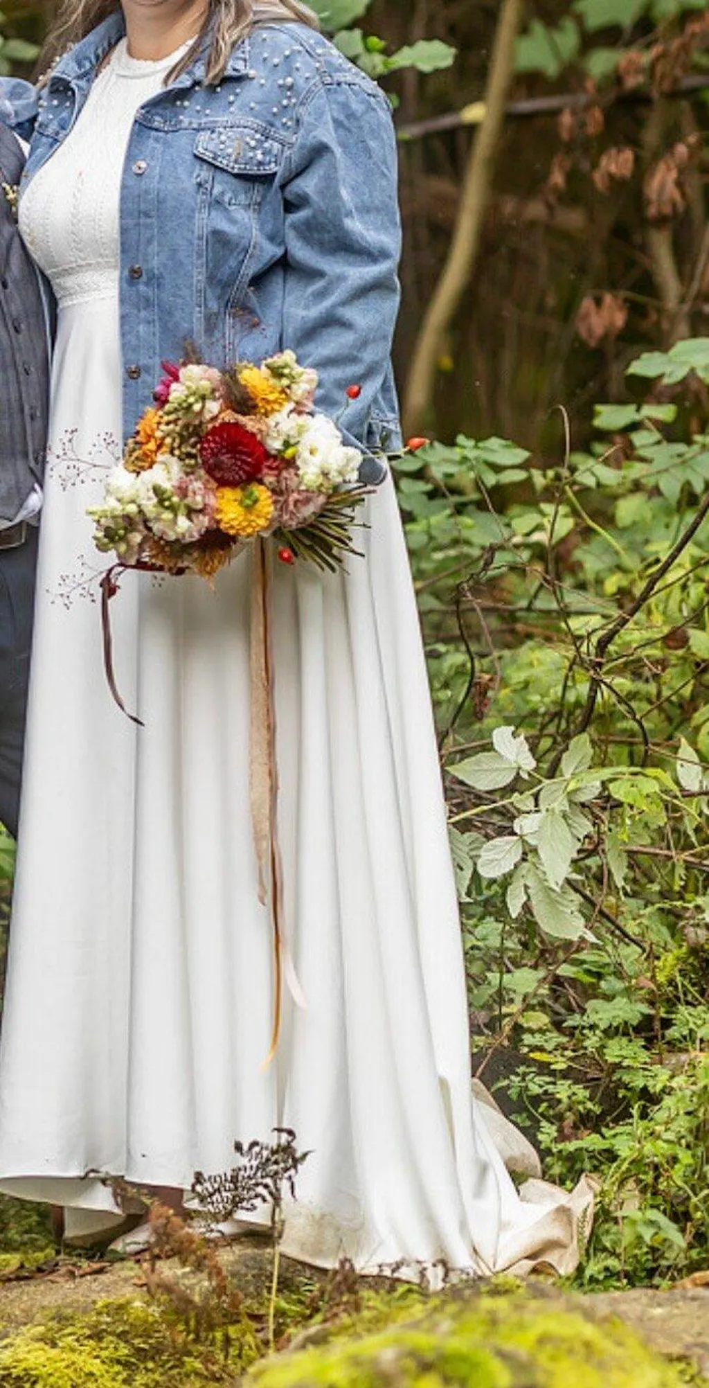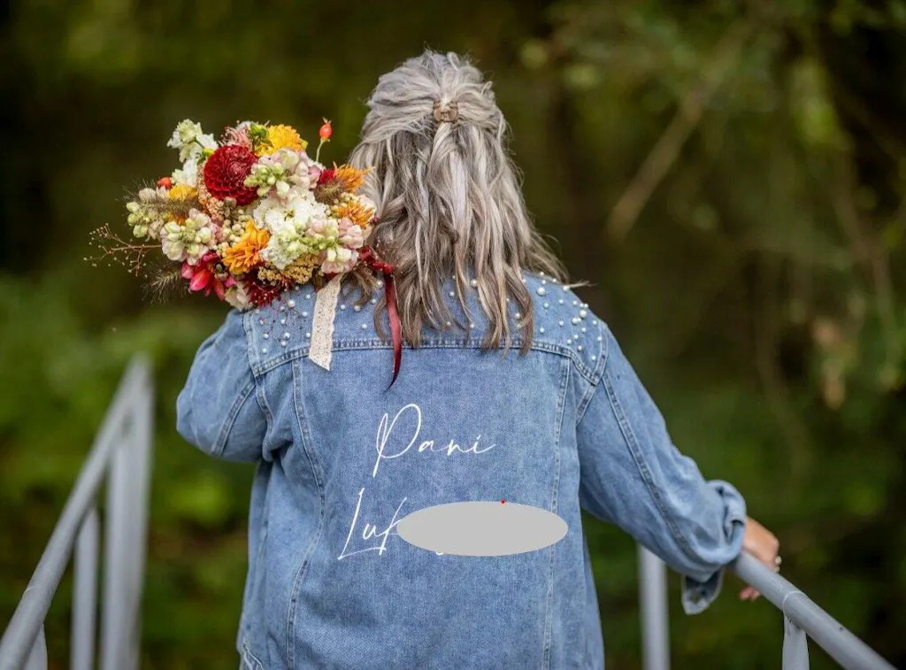 This Bridal Denim Pearl Jacket offers a unique and personalized touch for your wedding day. Adorned with complete pearl detailing, custom bride name and date placement on the collar. This jacket is the perfect combination of stylish comfort and luxurious detailing, making it an ideal statement piece for any special occasion. The perfect way to make your special day even more special!