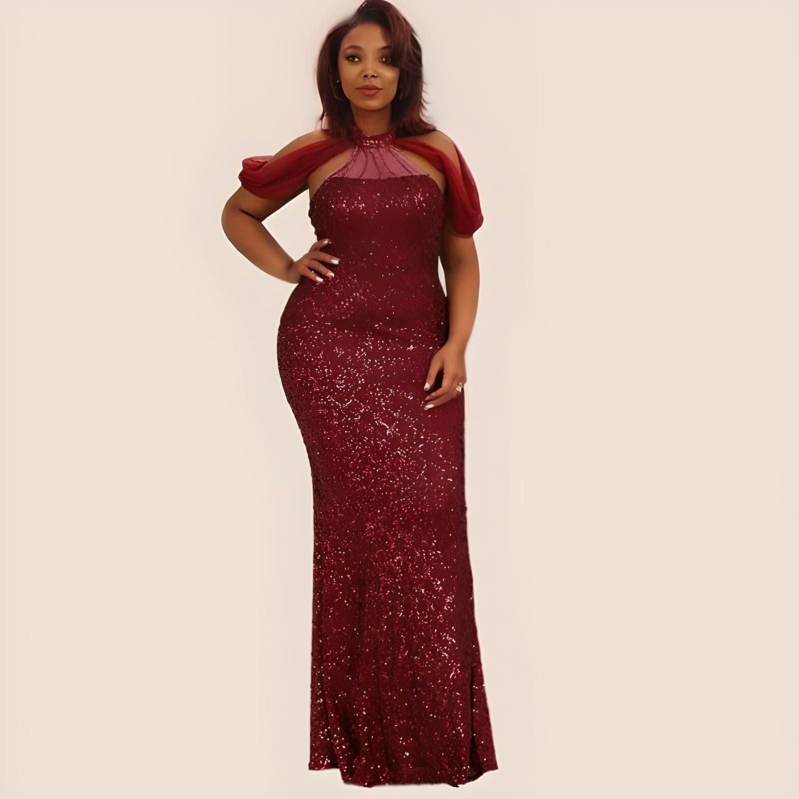 The DAKOTA PLUS Formal Couture Dress is a timeless option for any special occasion. Elegantly crafted from sequin fabric, it features a trumpet-mermaid silhouette and halter neckline with beading and sequined decoration for an added touch of glamour.